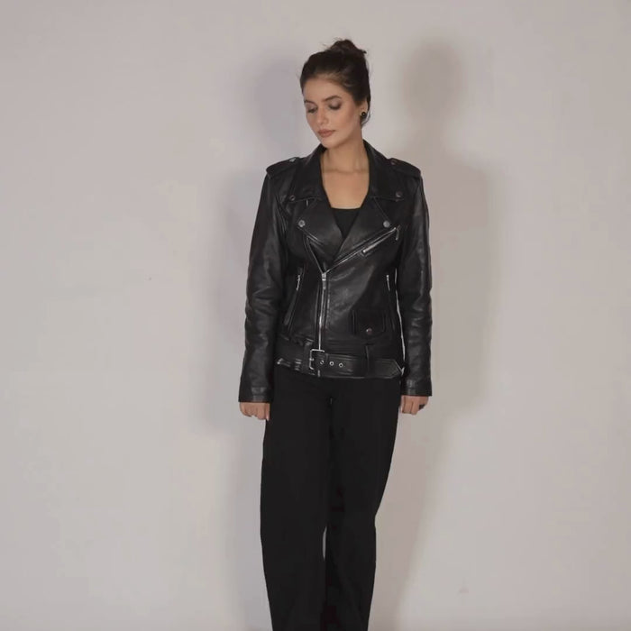 Black Real Leather Biker Jacket for Women